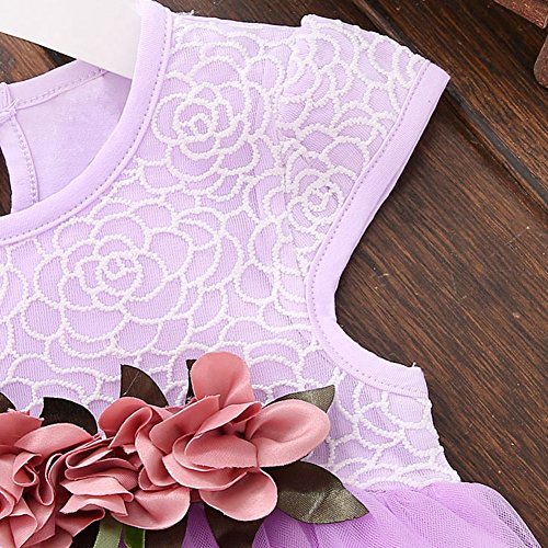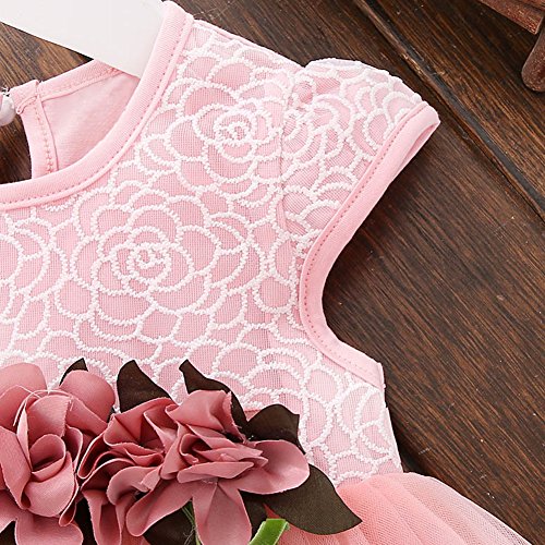 Liebeye 女の子プリンセスドレス ノースリーブ ウエストフラワー ふわふわ ギフト ファッショナブル ラウンドカラー レース ドレス スカート ピンク 73cm