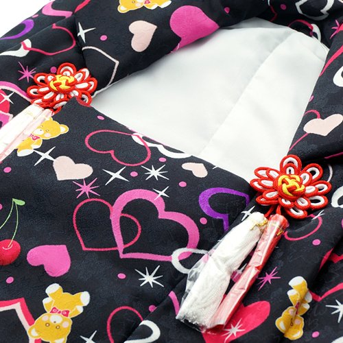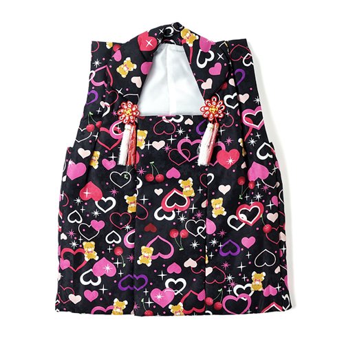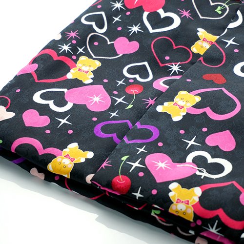 黒地にハートマークとクマのぬいぐるみの絵柄。