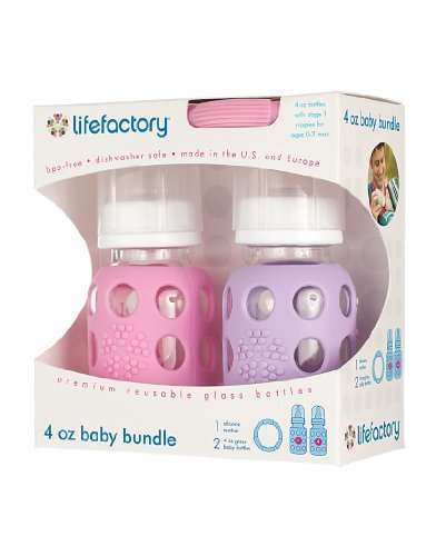 Lifefactory BPA-Free Glass Baby Bottle Gift Set with Two 4-Ounce Glass Bottles and Silicone Teether, Pink & Lilac by Lifefactory