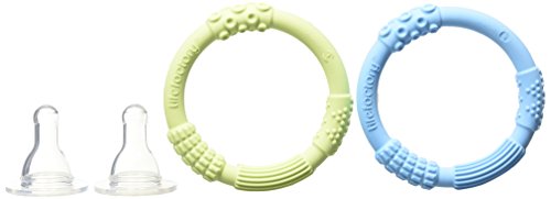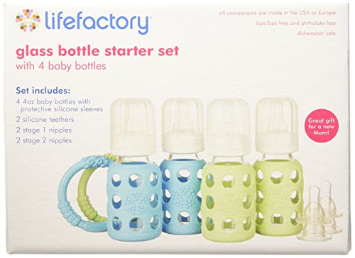 - Lifefactory 4-Ounce BPA-Free Glass Baby Bottle and Protective Silicone Sleeve Starter Set, Spring/Sky Blue with 4 Baby Bottles, 2 Silicone Teethers, and 2 Nipple 2-Packs