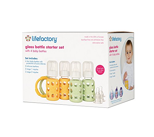 - Lifefactory 4-Ounce BPA-Free Glass Baby Bottle and Protective Silicone Sleeve Starter Set, Spring/Yellow with 4 Baby Bottles, 2 Silicone Teethers, and 2 Nipple 2-Packs