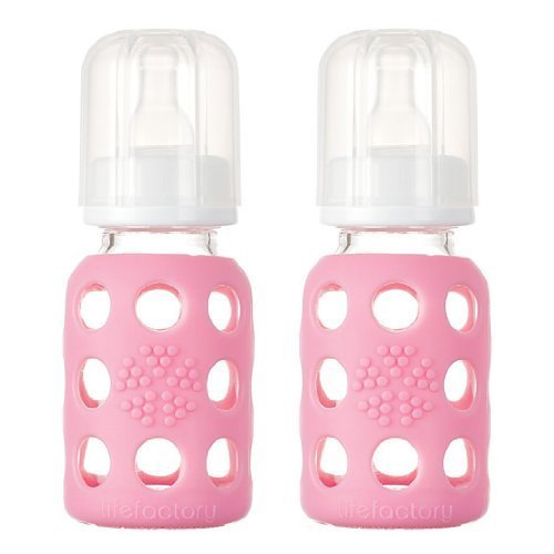 Lifefactory Glass Baby Bottle with Silicone Sleeve 4 Ounce, 2 Pack - Pink by Lifefactory [並行輸入品]