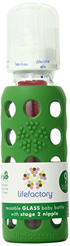 - Lifefactory 9-Ounce BPA-Free Glass Baby Bottle with Protective Silicone Sleeve and Stage 2 Nipple, Grass Green