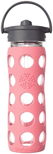 Lifefactory Glass Bottle with Straw Cap - Coral - 16 oz by Lifefactory