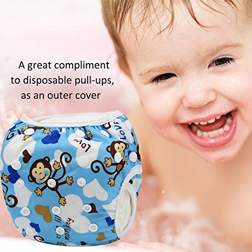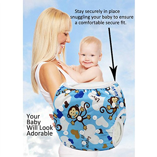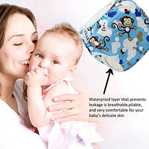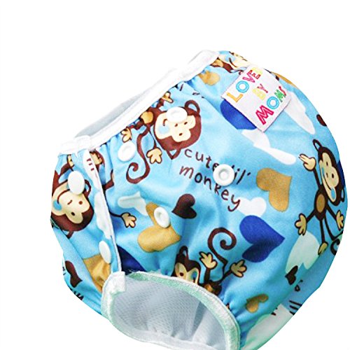 Ligangam ベビー スイムパンツ 防水 スイミングパンツ 水遊び スイミングスクールに 再利用可能なスイム布おむつ 1枚 柔らかい 通気(ブルーのサルさん)