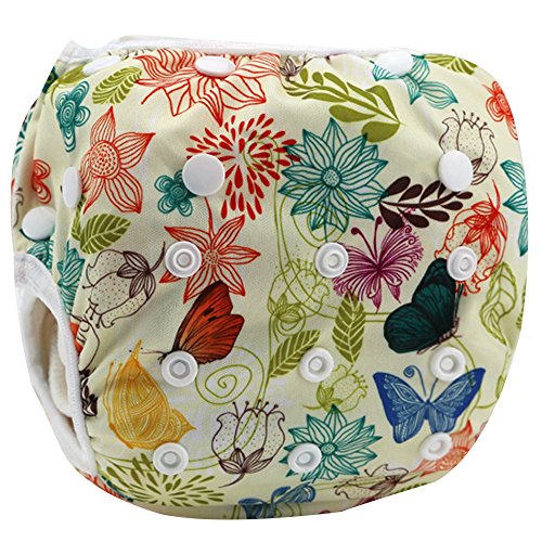 新品 Ligangam 水あそびパンツ 女の子用 赤ちゃん用 水着 スイムパンツ ベビー オムツ パンツ ビッグ スイミングパンツ 男の子 赤ちゃん水泳パンツ 洗える オムツ機能付 再利用可能 ボタンでサイズ調整可能 防水外層 スイミング教室・公園・海水浴・温泉旅行 柔らかい 通気 誕生日お祝い(3-15kg)(チョウと花)