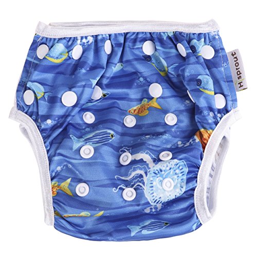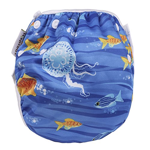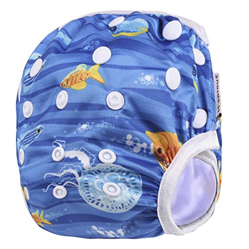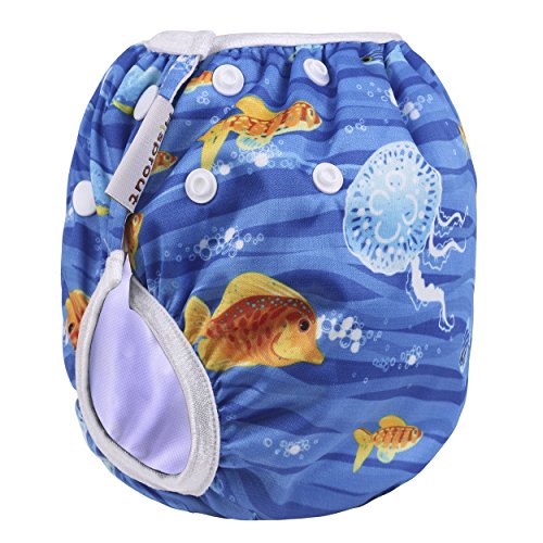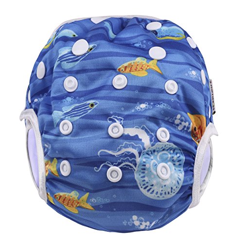 Ligangam 水あそびパンツ女の子 男の子 水着 スイムパンツ オムツパンツ スイミングパンツ スイミング教室・公園・海水浴・温泉旅行 柔らかい 通気 洗える オムツ機能付 再利用可能 ボタンでサイズ調整可能 防水外層 誕生日お祝い (3-15kg)(深海魚)