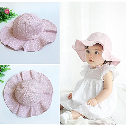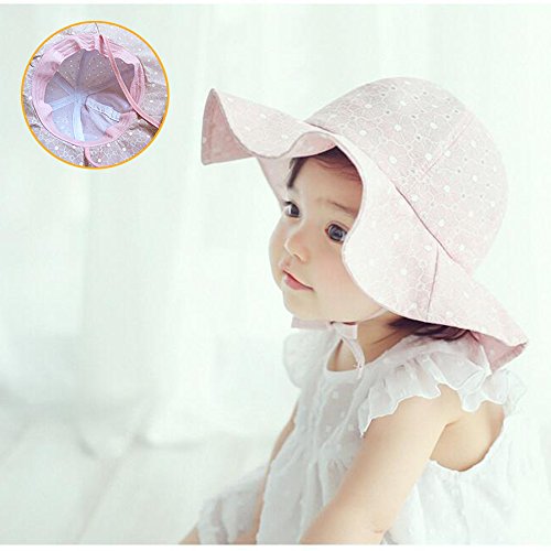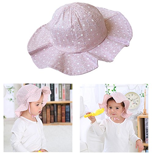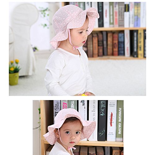 Ligangam 帽子 日よけ キャップ サンハット花柄ハット ベビー 女の子 赤ちゃん 幼児用 キッズ 子供 UVカット つば広 あごヒモ付き 夏 おでかけ用品 50cm 1-4歳適用 ピンク