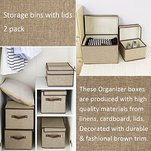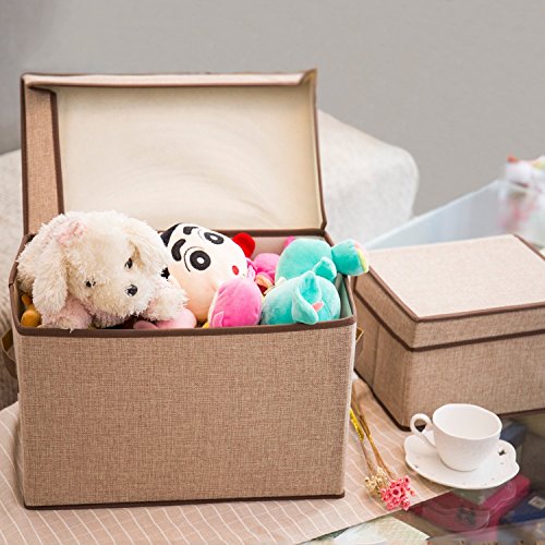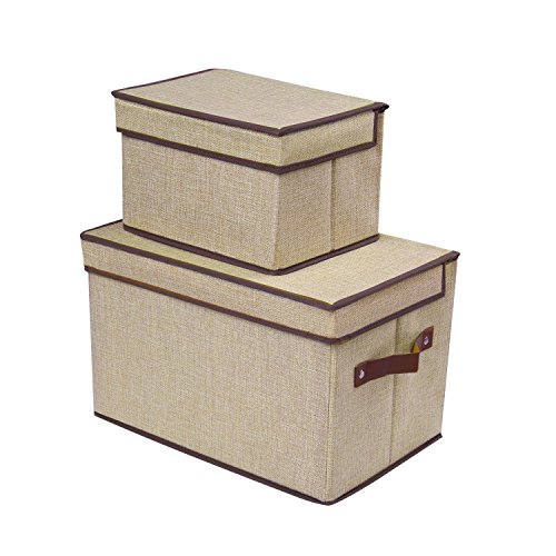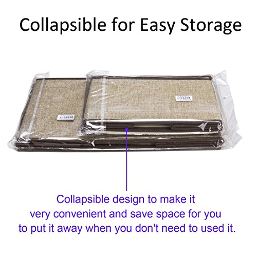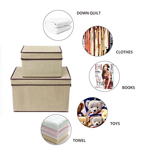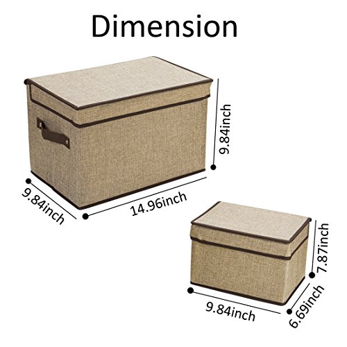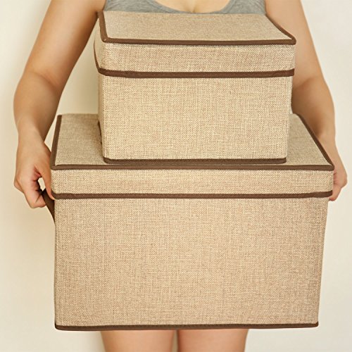 - Made of high quality linen cotton with decorative brown trim, come with lid design, to protect your stuff against dust, moth and moisture.