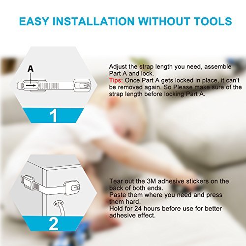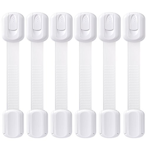 照明Mallベビー安全ロック|子Proof冷蔵庫、キャビネット、引き出し、アプライアンス、トイレシート、オーブン|noツールまたはdrilling|使用3 M粘着with調整可能ストラップとラッチシステム( 6パックホワイト)