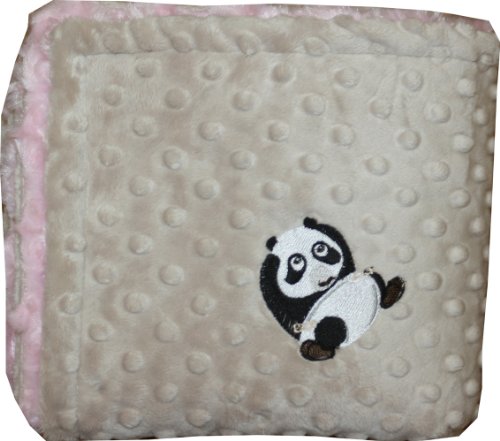 Lil Cub Hub 3BSMPR-M Panda Minky Blanket - Mocha Dot with Pink Rosebud Swirl