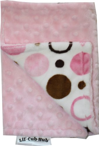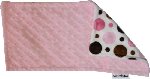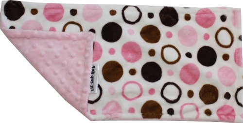 This generous - sized burp cloth is the perfect size for messes and can even be used a security snuggly. It is made from a sophisticated pink and brown circle print minky on one side and a baby pink minky dot on the other side. It is fully reversible and machine washable.