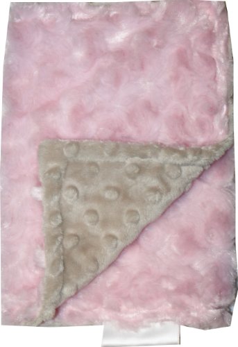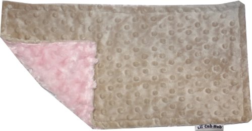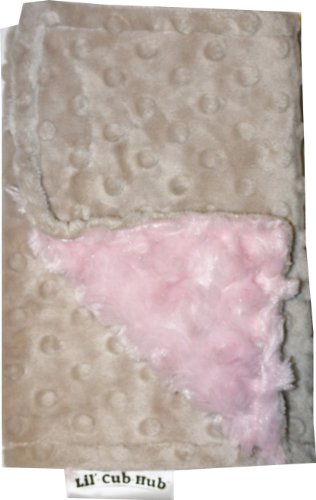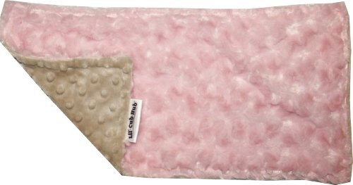This generously - sized bib is the perfect size for messes and can even be used as a security snuggly. It is made from a luxurious mocha minky dot on one side and a baby pink rosebud swirl on the other side. It is fully reversible and machine washable.