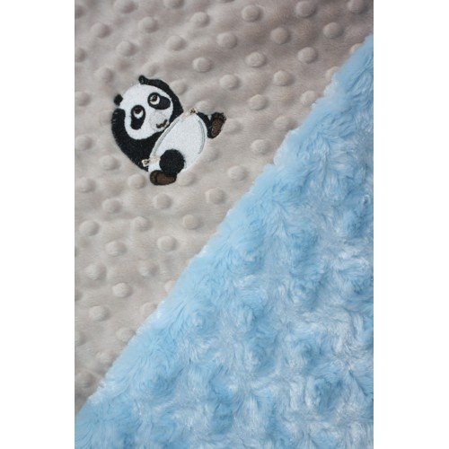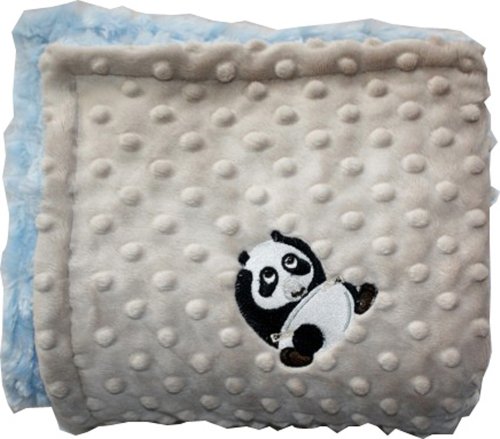 Lil Cub Hub 3BSMBR-M Panda Minky Blanket - Mocha Dot with Blue Rosebud Swirl