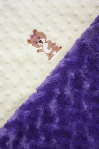 This luxurious minky blanket is embellished with an adorable original Lil Cub Hub girl bear, It is made with a sweet baby yellow minky dot fabric on one side and a gorgeous bright purple rosebud swirl minky dot fabric on the other side. It is approximately 29 x 35 in. The perfect size for a baby, children or even as a lap blanket. It is fully reversible and machine washable (wash on cold/low dry). I made a version of this blanket for my toddler son and he loved it so much I ended up making many, many more for him. He brings them everywhere. A lady who purchased one told me she also took it everywhere as a lap blanket, Apparently a security blanket isn't just for toddlers anymore. This would make a wonderful gift for a baby, child, or the expecting parents.