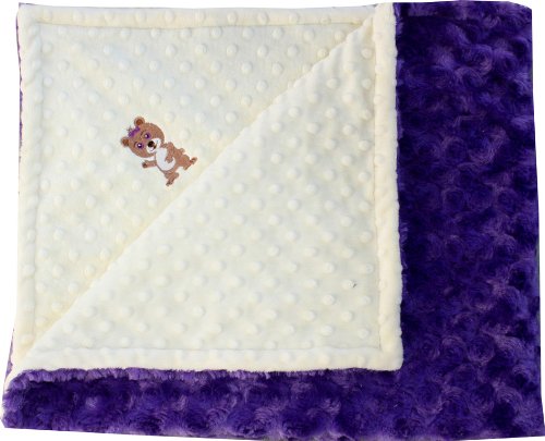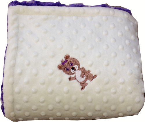 Lil Cub Hub 5BSYDPR- M Girl Bear Minky Blanket - Yellow Dot with Purple Rosebud Swirl
