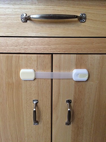 Play-Proof Slide Lock Child Baby Safety Latches for Cabinets Refrigerators Drawers Earthquake with Quality Adjustable Strap Won't Break - Made of Non-toxic Plastic (Cream, 6) by LIL RASKALZ