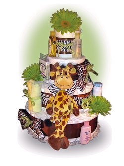 Handmade Only with Pampers Brand Swaddler Size 1 Diapers (72 diapers). Every Diaper is Usable.;4 Tier Design is 12'' Wide and 16'' Tall;Safari Diaper Cake Features Plush Giraffe, Washcloths, Johnson Brand Baby Products, Cotton Swabs;Safari Diaper Cake is Wrapped in White Tulle - Ready for Gift Giving Right Out of the Box;Unique Design only Offered By Lil' Baby Cakes. Your Selection will Match Our Product Image. Don't Accept Imitations or Other 3rd Parties Claiming to Offer this Design.
