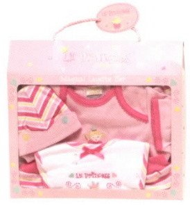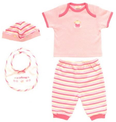 夢がいつもハッピーエンドにかなうマジカルキングダムをモチーフに妖精のアップリケつき。 Tシャツ、パンツ、キャップ、ビブをノベルティボックスに入れたギフトセット。