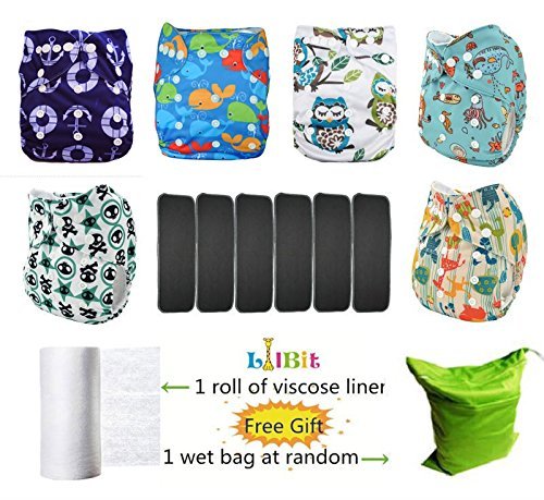 - Lilbit Baby 6 PCS Pack Printed Washable One Size Cloth Diaper Nappy + 6 PCS Bamboo Charcoal Inserts