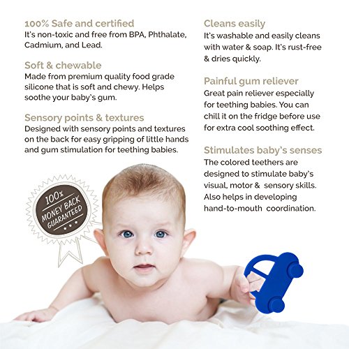 Lil' Teethers Baby Teething Toys. Bendable & Freezer friendly. Highly Recommended by Moms. 100% Silicone (similar to nipples & pacifiers), BPA & Phthalates Free, FDA Compliant. Car by LilTeether