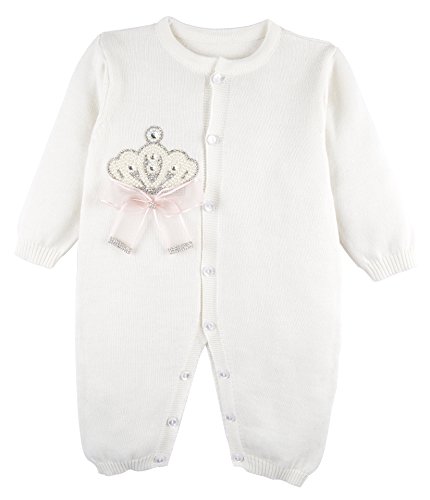 Lilax Baby Girl Jeweled Crownニット長袖ロンパース0 – 3ヶ月ピンク