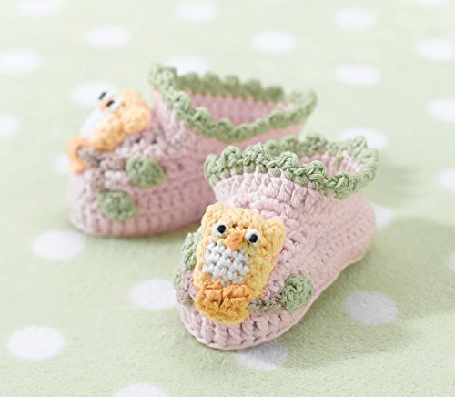 Adorn Baby's feet with this pair of owl booties, sized for babies 0-6 months., Each cotton bootie is crocheted and finished off with an adorable owl., Wash separately., Warm hand or Machine (gentle cycle)., Do not bleach. Line dry - warm iron. Do not dry clean. Also available in blue. .