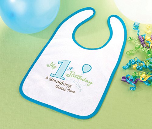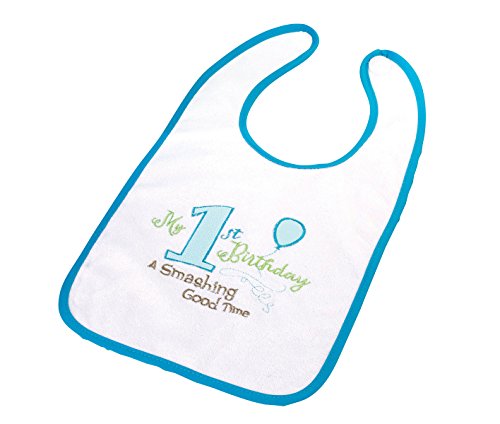 Celebrate Baby's first birthday with this cotton bib embroidered with the words "My 1st Birthday-A Smashing Good Time". Baby will have a great time and stay clean with a special bib perfect for the occasion. Bib has a Cloth Tie closure and is also available in pink.