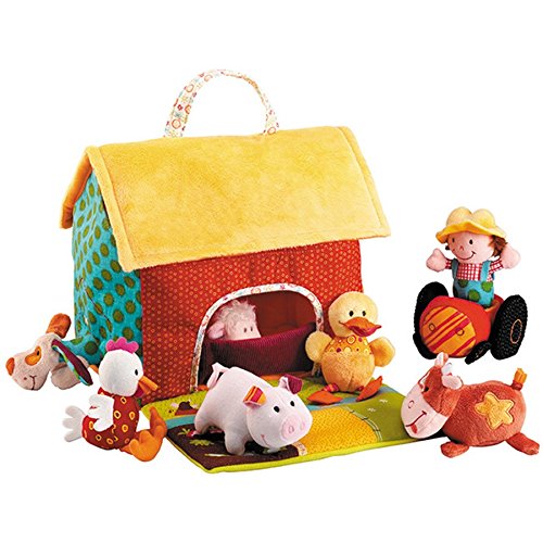 大きなドアや窓がいっぱいついた“ファームハウス”は、とても 柔らかくて、心地よく遊べます。 折りたたみ式の庭で動物たちを 元気いっぱい遊ばせてください。 〈知育効果〉 ・想像力を刺激します。 ・創造力を発達させます。 ・それぞれの動物の違いを発見します。 ・人間や動物たちの共存を認識します。 対象月齢:6カ月から 材質:ポリエステル 原産国:中国 サイズ/ 家:W24.4cm×D17cm×H32cm ヒヨコ:W7.5cm×D6.5cm×H8cm ウシ:W5.5cm×D10cm×H9.5cm ヒト:W8.8cm×D6cm×H12cm ニワトリ:W8cm×D7.5cm×H11cm ブタ:W6.5cm×D11cm×H5.5cm イヌ:W4cm×D14cm×H5cm ヒツジ:W6.5cm×D9.5cm×H7.5cm クルマ:W10.5cm×D9.5cm×H6.4cm