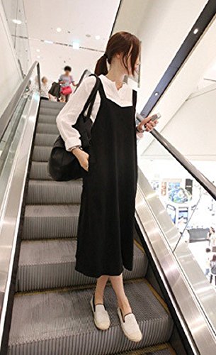 (リリィ) Lily 妊婦 マタニティ 楽チン ゆったり ジャンパースカート ブラック スリット 入り 産前 産後 スカート (M)