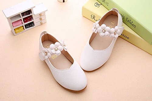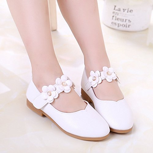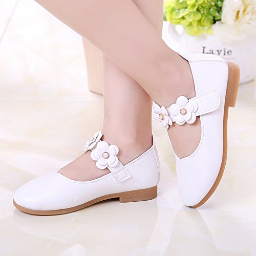 Limi 女の子 ガールズ 子供靴 フォーマルシューズ かわいい 花付き 発表会 結婚式 演奏会 ドレスシューズ PUレザー製 履きやすい (14cm, ホワイト)