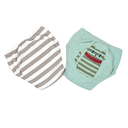 Limi ベビー 子供 北欧風 6層 吊り式 漏れにくい トレーニングパンツ 綿100% 2枚セット 女の子 男の子 おむつ 練習 (90, グリーン·ねこ)