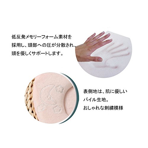 - ★表側地は、肌に優しいパイル生地。中身は低反発メモリーフォー厶素材を採用し、頭部への圧が分散され、頭を優しくサポートします。