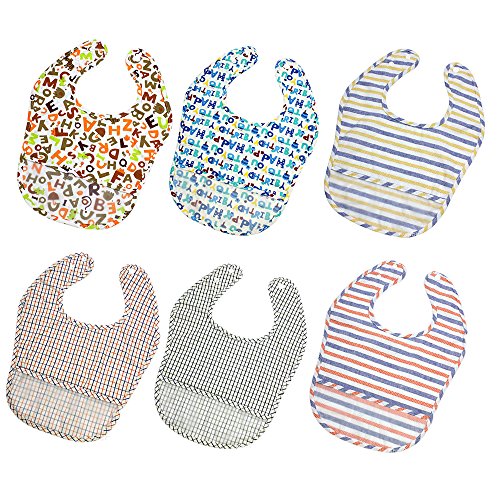 Limi 食事用 防水ビブ 6枚組 エプロン やわらか 軽量 汚れが落ちる ポケット付き よだれかけ 洗濯機で洗える すぐ乾く 綿 EVA素材 (男の子)