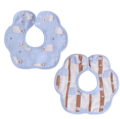 Limi ベビー 赤ちゃん 360°回転可 6重ガーゼコットン ビブ スタイ 5枚セット 2枚セット よだれかけ 女の子 男の子 スナップボタン式 (ブルー)