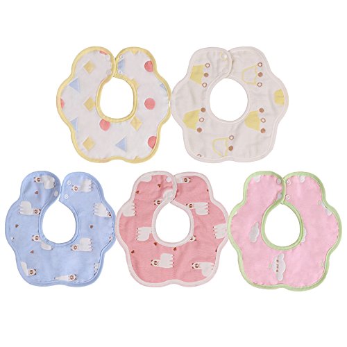 Limi ベビー 赤ちゃん 360°回転可 6重ガーゼコットン ビブ スタイ 5枚セット 2枚セット よだれかけ 女の子 男の子 スナップボタン式 (全5枚セット)