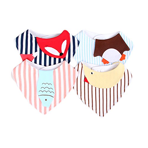 Limi ベビー用 女の子 男の子 三角 よだれかけ スタイ ビブ 4枚組 かわいい 動物形 ボーダー 綿100% スナップボタン式 サイズ調整可能