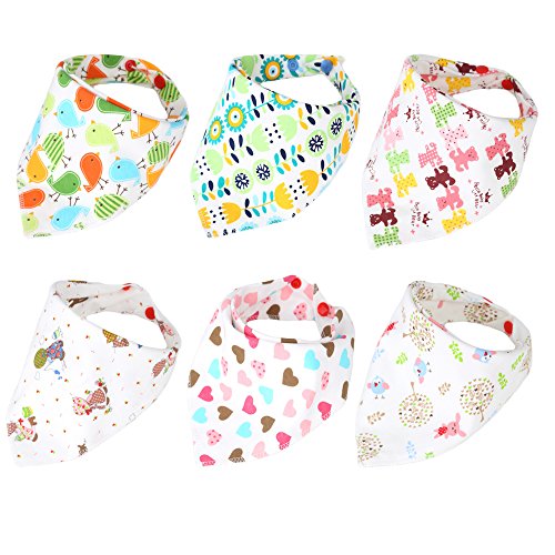 Limi ベビー用 三角 バンダナ型 よだれかけ スタイ ビブ 6枚セット 綿100% 2層タイプ スナップボタン式 サイズ調整可能 (女の子)
