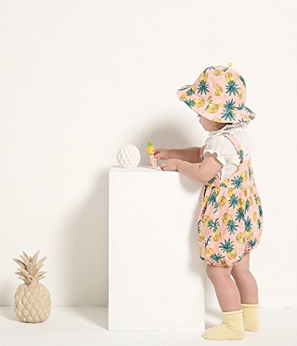 Limi ベビー 子供用 つば付き 帽子 ハット キャップ UVカット 紫外線対策 日焼予防帽子 100%コットン 夏 春 女の子 男の子 (ピンクパイナップル)