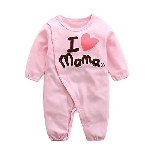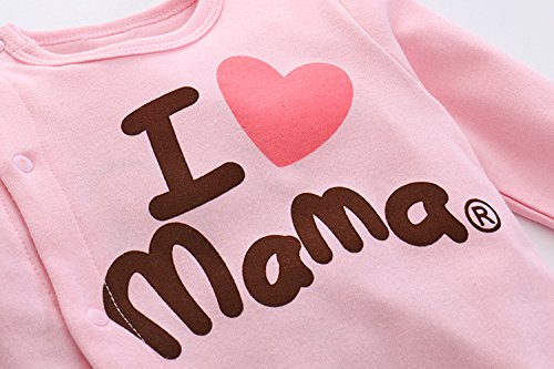 Limi ベビー 赤ちゃん I love mama papa ロンパース 長袖 カバーオール 100%綿製 肌着 前開き オールシーズン 0~12ヶ月 股下スナップ付き 女の子 男の子 (70, ピンク I love mama)