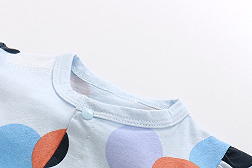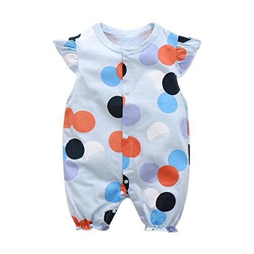 Limi カラフルドット ベビー 新生児から 水色 ロンパース 半袖 カバーオール 綿100%製 前開き 柔らか 夏 (95)