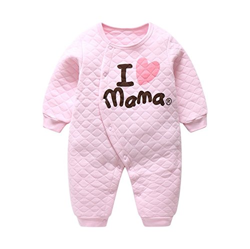 Limi ベビー 赤ちゃん ロンパース 長袖 秋冬 中綿 カバーオール 100%綿製 肌着 前開き 0~12ヶ月 股下スナップ付き 女の子 男の子 (70, ピンク I love mama)