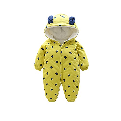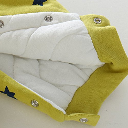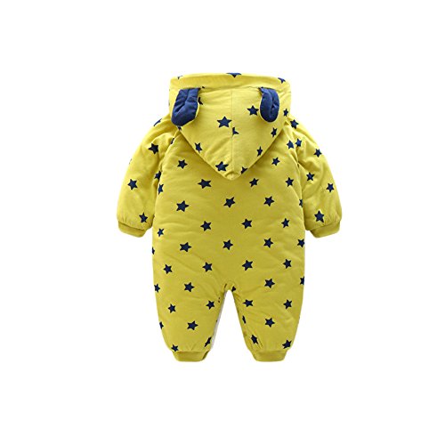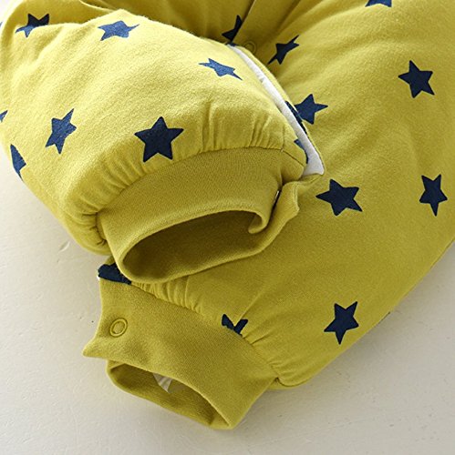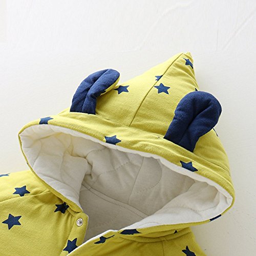 Limi ベビー 赤ちゃん 長袖ロンパース 秋冬 中綿 カバーオール 前開き コート 股下スナップ付き 女の子 男の子 防寒 フード付き 星柄 (100cm, イエロー)
