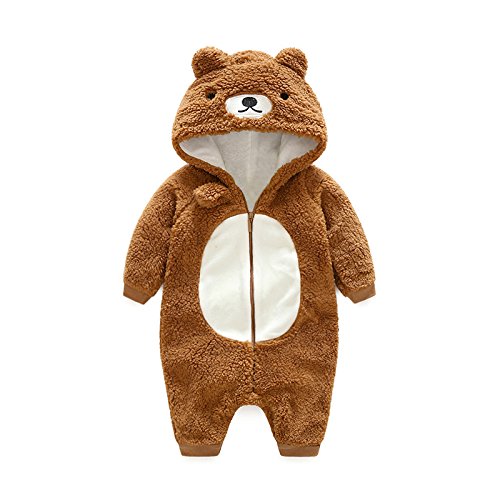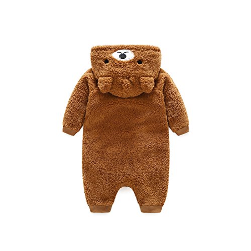 Limi ベビー 赤ちゃん 長袖ロンパース 秋冬 着ぬいぐるみ 前開き コート 女の子 男の子 防寒 フード付き かわいい耳付き (80cm, ブラウンクマ)