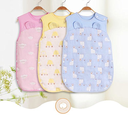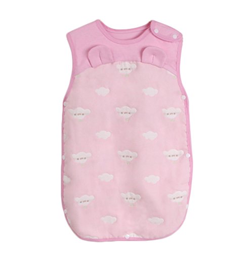 Limi ベビー キッズ 6重ガーゼー 綿100% スリーパー パジャマ 寝袋 柔らか 夏秋 かわいい動物柄 (M, ピンク)
