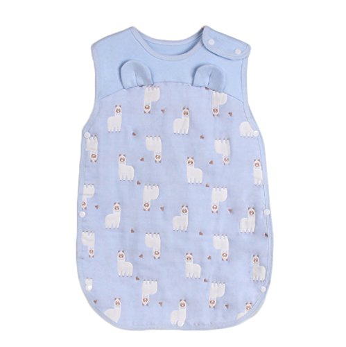 Limi ベビー キッズ 6重ガーゼー 綿100% スリーパー パジャマ 寝袋 柔らか 夏秋 かわいい動物柄 (L, ブルー)