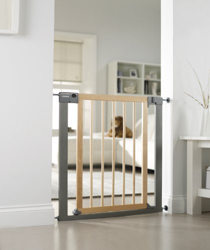 Lindam Sure Shut Deco Safety Gate - Natural Wood & Silver Metal