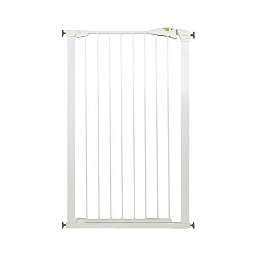 Attractive Extra Tall Safety Gate for pets;Dimensions 75-82cm and 110cm Tall - No extensions available;White gloss finish;Tamper Proof lock;Squeeze and lift handle for easy one handed adult opening