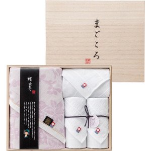 ☆桂由美と今治ブランドのコラボタオルと桂由美本人がセレクトしたガーゼタオルを木箱に詰め合わせた高級贈答品です。独特な質感のあるタオルギフトに贈られた方も納得頂ける商品です。