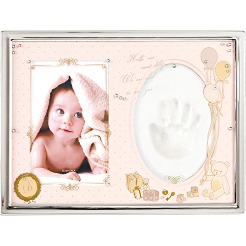 ☆☆赤ちゃんの手型と、大切な写真を一緒に飾ることができます。ガラスにプリントされた淡いカラーのイラストと、キラキラ光るラインストーンがとても優しく上品な雰囲気。赤ちゃんの性別を問わず使えるゴールドとシルバーを基調にした色使いが嬉しい、とっておきの手型フォトフレームです。
